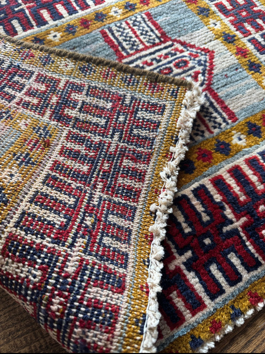 Dusty Sapphire Tribal Mat 1’10” x 2’8” Circa 1970–1990
