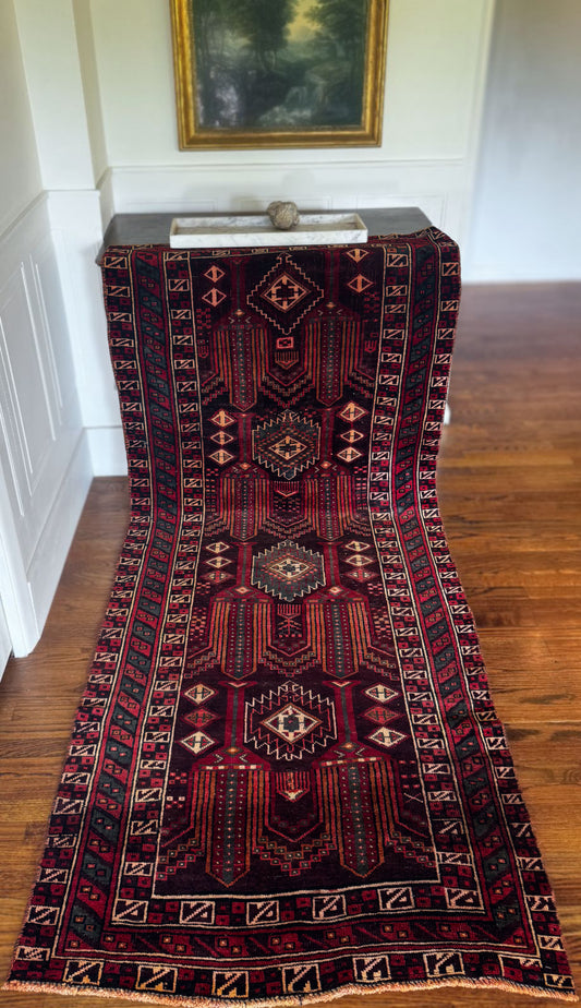 Vintage Raisin Baluch Runner 3’1 x 6’2 Circa 1910–1930