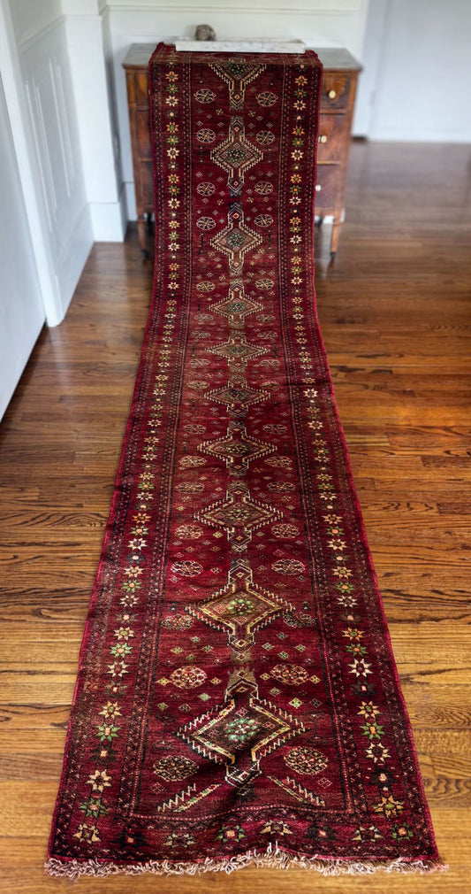 Ruby Star-Chain Herki Runner — 2’8” x 12’3” circa 1935-1955