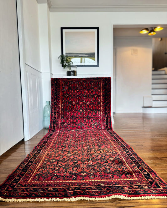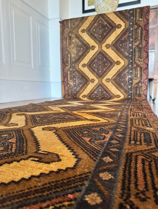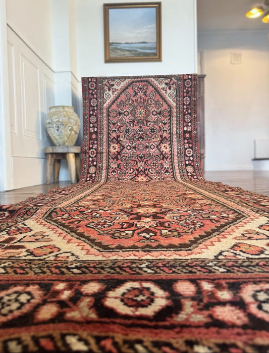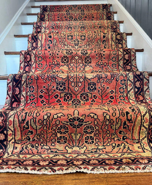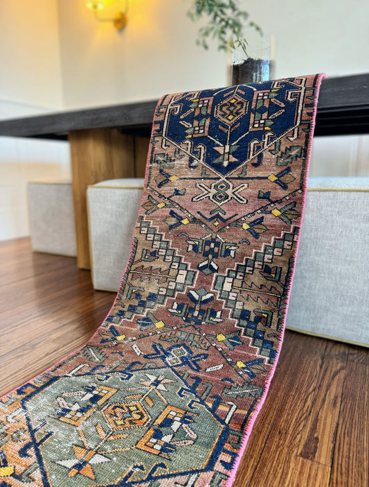 Vintage veggie dyed hand-knotted runner 3’2 x 9’3