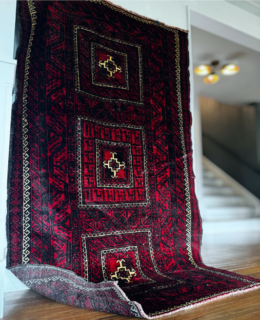 Vintage Hand-knotted Baluchi rug 4’3 x 7’5