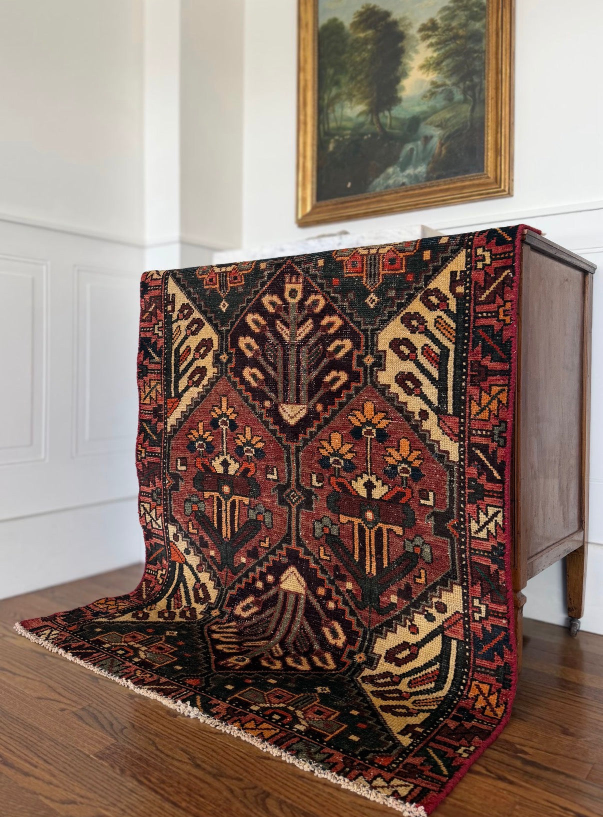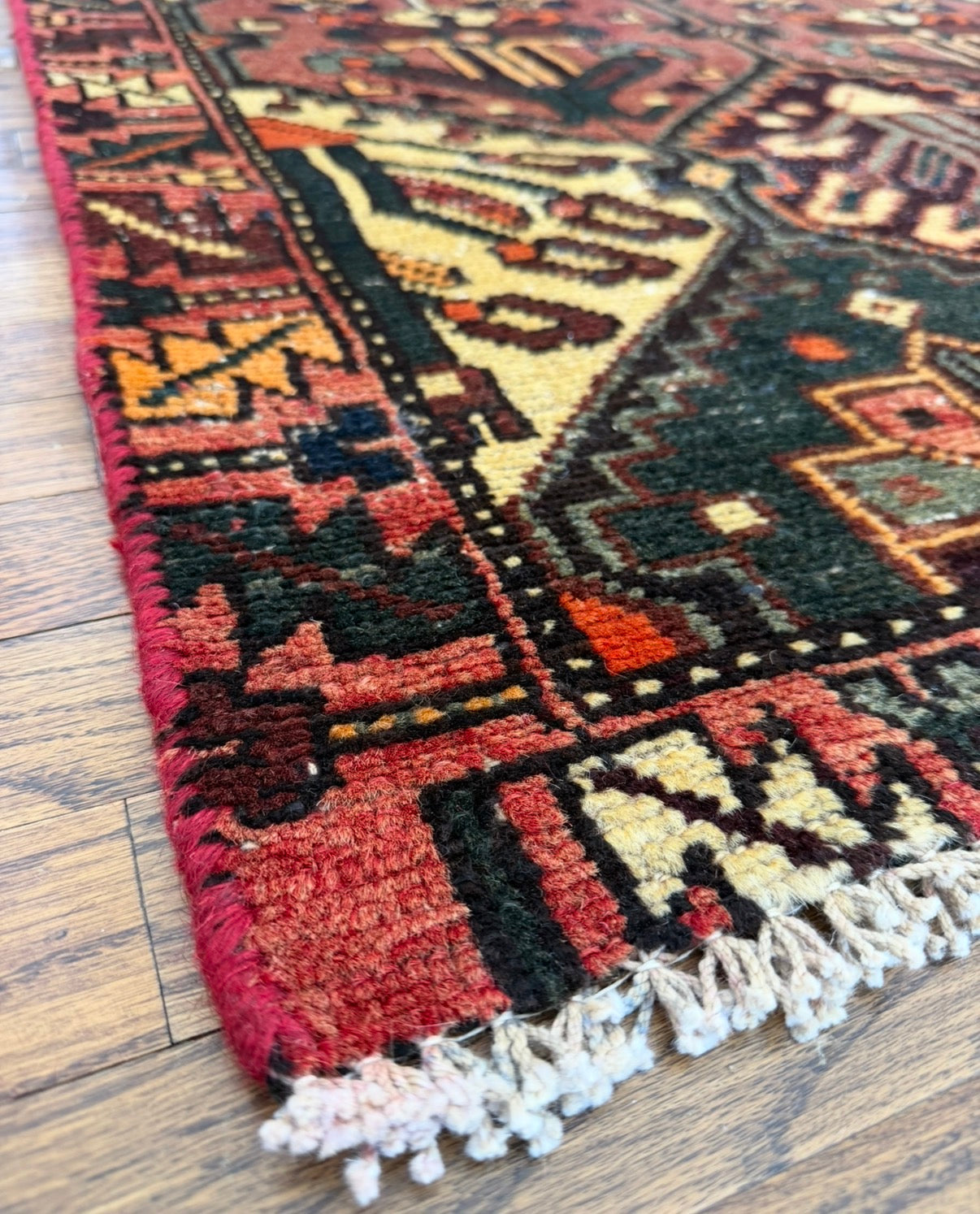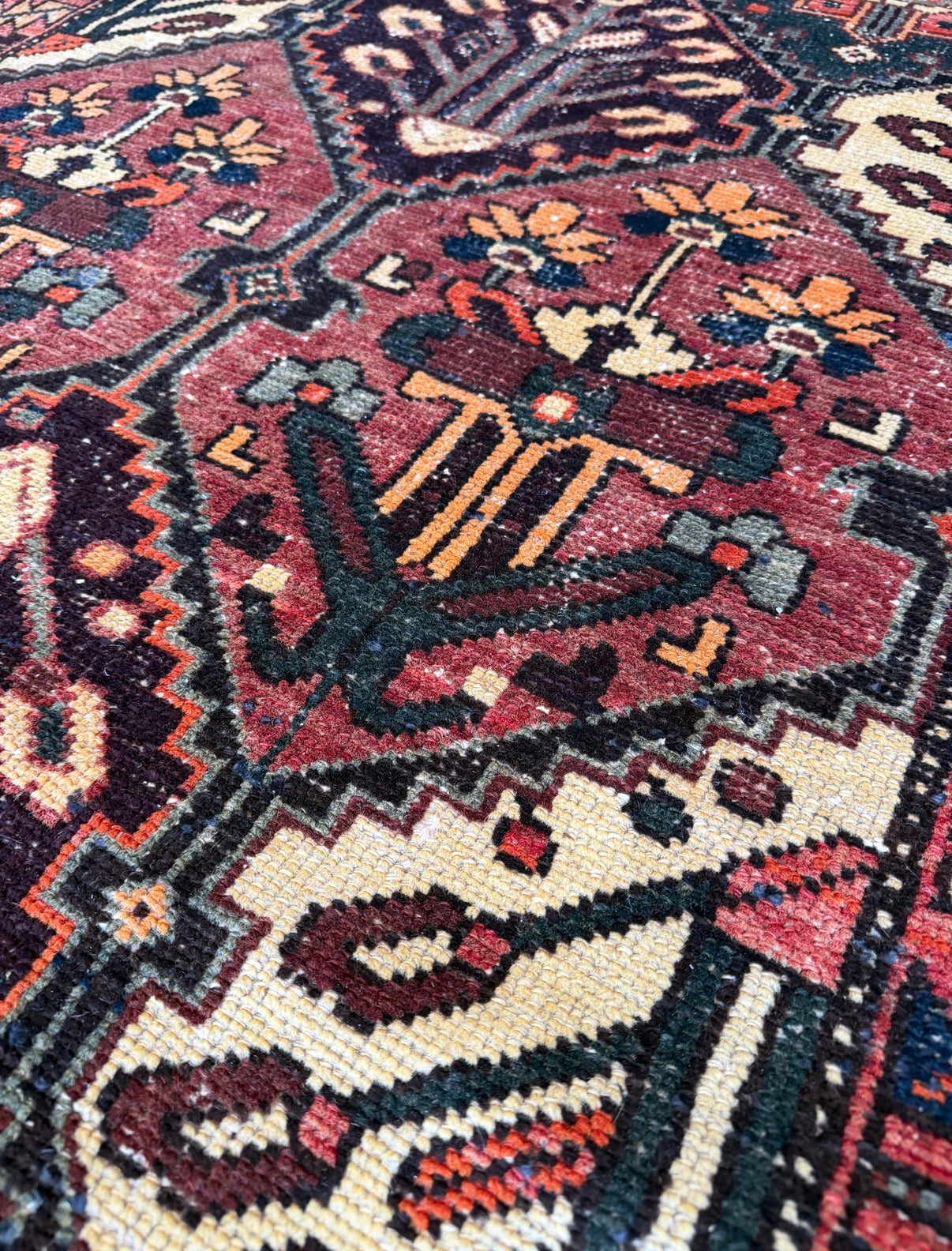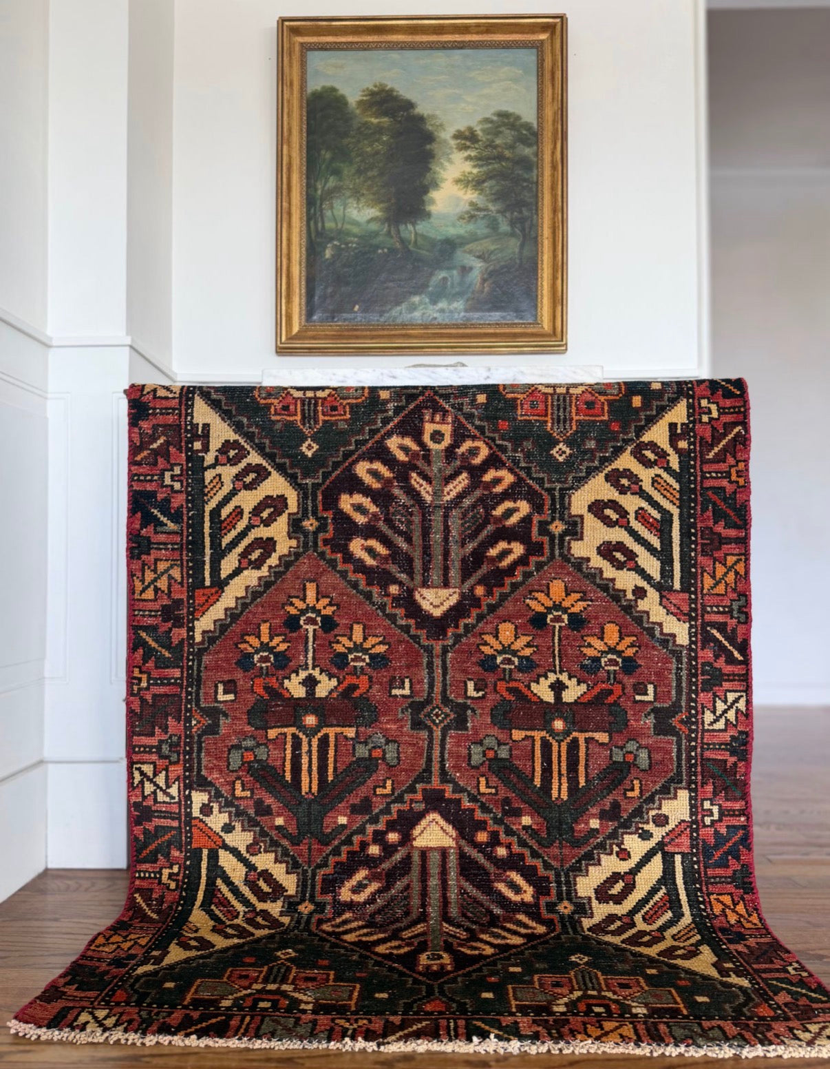 Free Shipping within 48 hours | Returns accepted | Questions? DM me on Instagram | Please note: These rugs are old and have lived a long life. When dealing with antique and vintage rugs it is very common to see color & size variations, signs of wear, repairs, etc. I photograph using natural light only. I do not retouch or otherwise manipulate images of rugs. Prices are very competitive because the rugs are not professionally cleaned. Every rug is however vacuumed two times front and back.