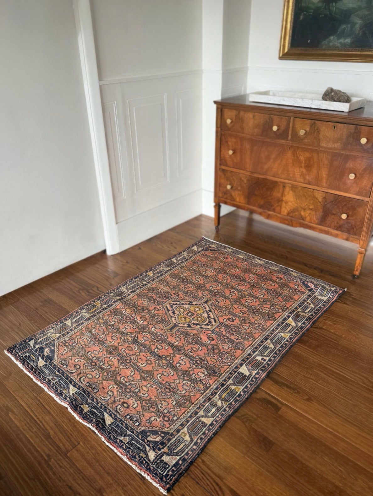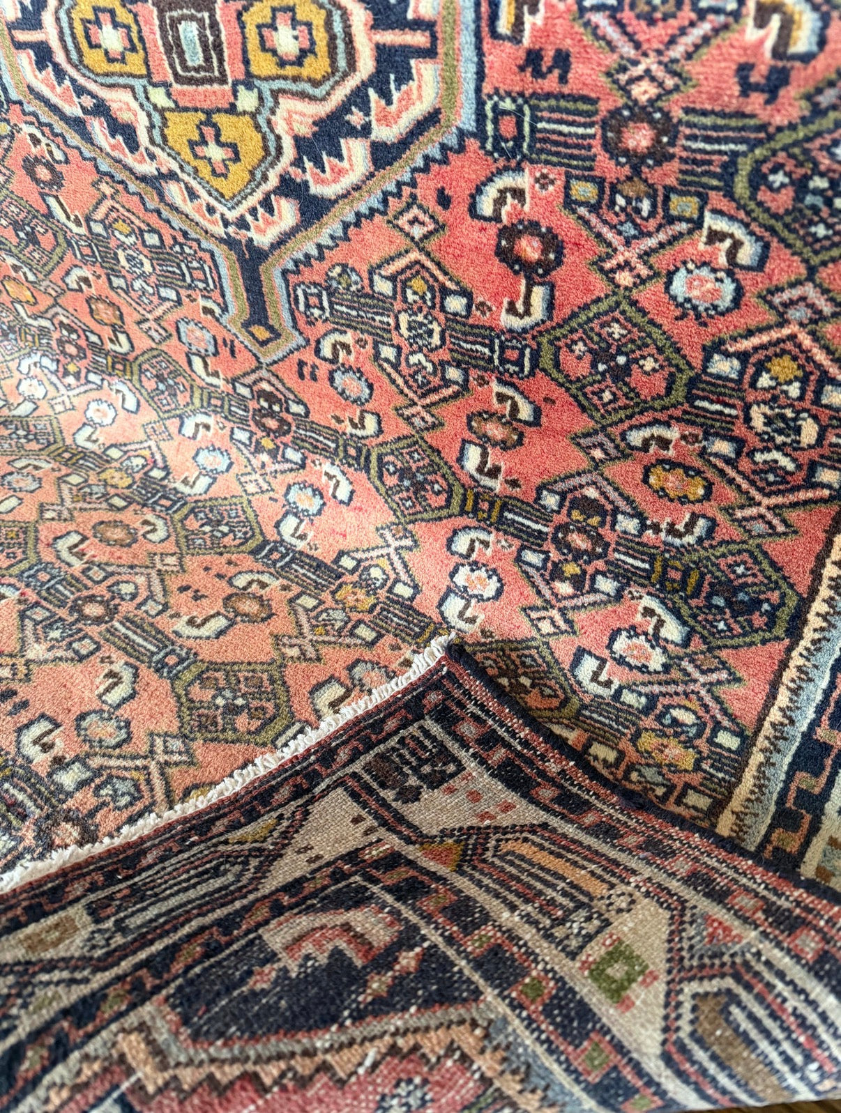 Free Shipping within 48 hours | Returns accepted | Questions? DM me on Instagram | Please note: These rugs are old and have lived a long life. When dealing with antique and vintage rugs it is very common to see color & size variations, signs of wear, repairs, etc. I photograph using natural light only. I do not retouch or otherwise manipulate images of rugs. Prices are very competitive because the rugs are not professionally cleaned. Every rug is however vacuumed two times front and back.