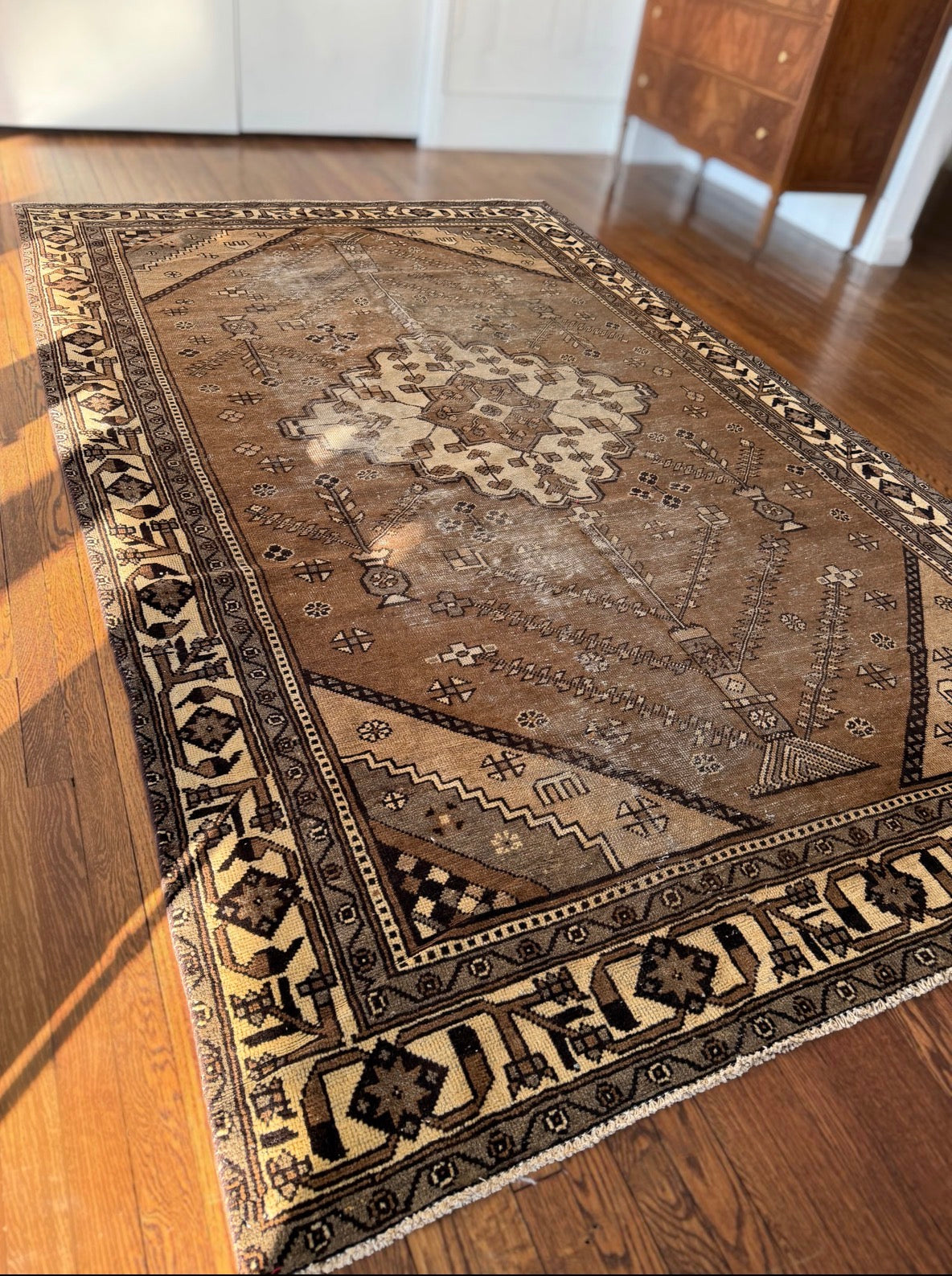 Free Shipping within 48 hours | Returns accepted | Questions? DM me on Instagram | Please note: These rugs are old and have lived a long life. When dealing with antique and vintage rugs it is very common to see color & size variations, signs of wear, repairs, etc. I photograph using natural light only. I do not retouch or otherwise manipulate images of rugs. Prices are very competitive because the rugs are not professionally cleaned. Every rug is however vacuumed two times front and back.